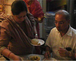 Mooh dikhai This ritual is performed at the groom's place. The groom's mother gifts the new bride a pair of gold bangles. It is done to view the face of the newly wed bride. Chauthari Satyanarayan katha is organised at the groom's place to thank the gods and offer them gratitude for the completion of the wedding ceremonies without any difficulty. In addition to that a hawan is also performed on the next day of wedding. It is a type of a spiritual puja. After the puja is completed holy water is sprinkled in the entire house to make the atmosphere auspicious. A prasad made of ilk, curd, honey, sugar, ghee and tulsi leaves are given to the guests. The prasad is known as panchamrit. Chauka cchulai In this ritual bride's cooking skills are tested. She has to cook five dishes which are simple. These five dishes consist of 'karhi-bari', boiled rice, kheer, poori and one dish of the bride's discretion and choice. She has to please the groom family members with her cooking skill. If she is successful in her task then she is adorned with gifts. Reception A wedding reception is a party held after the completion of a marriage ceremony. It is organised at the groom's place. All the family members of the groom, relatives and friends attend the reception. Hosts provide their choice of food and drink. It is an elaborated affair and lasts for several hours. These are the final rituals which complete the wedding and the newlywed couple start their new phase of their life. All relatives staying in the groom's place bless them with their wishes and leave for their residing places.