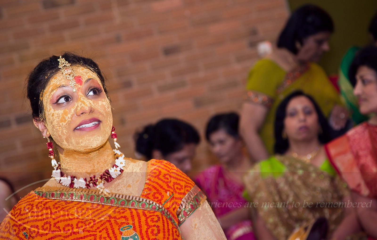 It is performed individually at both the bride and groom houses. In this ritual turmeric paste which is considered auspicious and beautifying is applied on the bodies of the bride and groom houses. Close relatives and friends at their respective places are invited in this ceremony.
