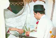 with a mango plant, planted in it is kept in the house. Two lamps are lit, one in each of the homes of the marrying parties. Once again the ladies travel to the home of the other party and place a silver coin upon the lamp. It is at this occasion that formal gifts are exchanged. This includes the exchange of wedding rings.