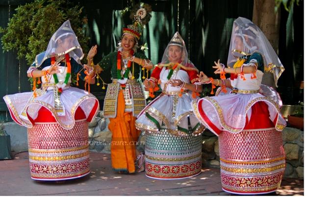 Ras Lila: It is a devotional theme dance which revolves around Lord Krishna and Radha. This shows the magnificent dance of Krishna and the cowherd girls. The dancers are dressed in embroidered skirts which covered their waist and goes down to their ankle. The dancers also wear veils which cover their head and face. The dancer who portrays the character of Krishna wears a tall peacock feather crown which adds a radiant appearance to this dance. This dance shows the intense love of Radha for Lord Krishna. This dance is performed in a temple. The performances are solo duet and group dances.