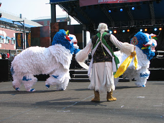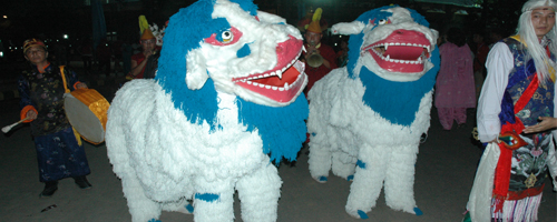 There are two artists needed to perform this dance. They have to get inside the costume of the lion. One artist is at the front part. It is the head of the lion. Second is at the back. The legs of the dancer positioned on the front become the two forelegs of the lion and the two legs of the dancer positioned at the back form the hind legs. In addition to that they have to wear a costume that weighs approximately eighteen kilograms. There is also a ring master. This dance is only performed by the male artists. The faces of the artist are not displayed during the performance so it is also known as masked lion dance. Usually two to four lions are used during the performance. Each dummy lion is made of white fur and the face is blue in colour.