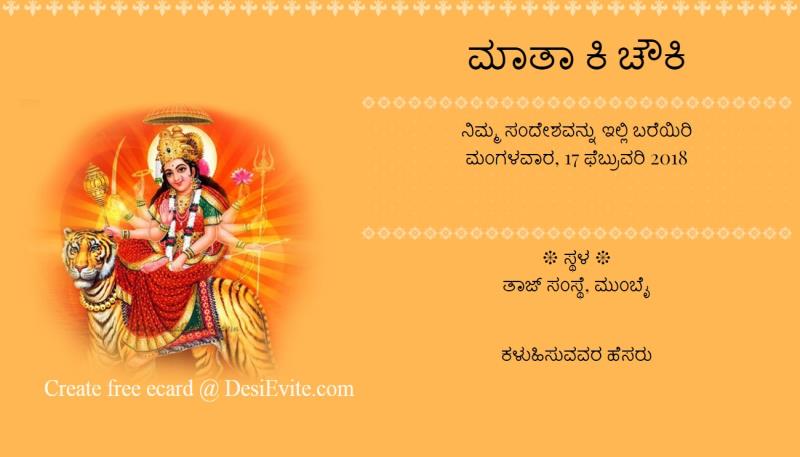 Create free kannada invitation ecard for Mata ka Jagran / Mata Ki Chowki