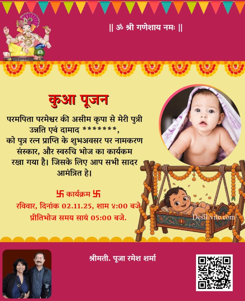 Hindi kuan pujan invitation ecard cradle design 145