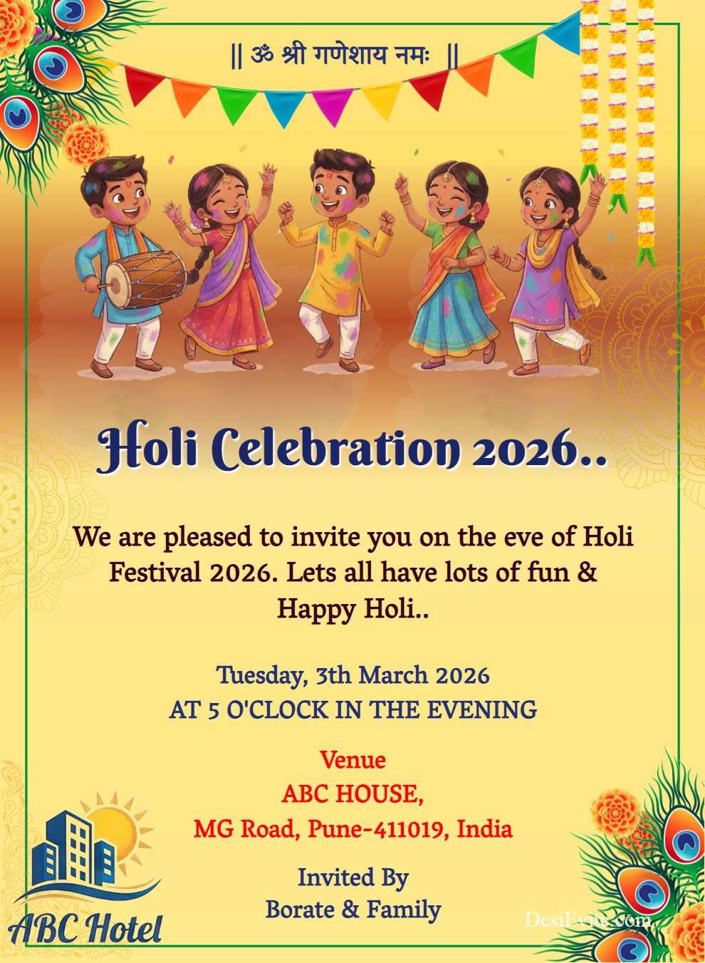 We are pleased to invite you on the eve of Holi Festival 2026. Lets all have lots of fun Happy Holi ..