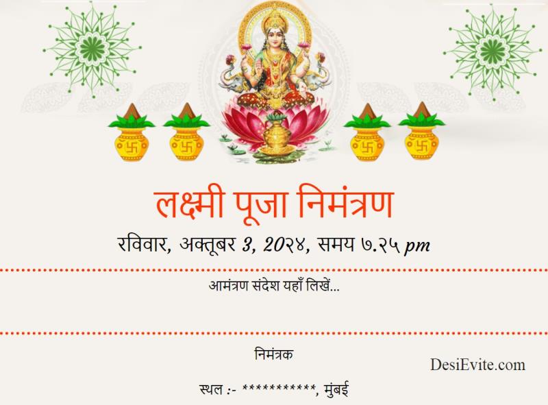 Traditional varalakshmi vratam invitation ecard golden border (ID-18744 Static Card )