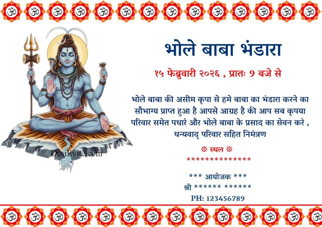 Bhole Baba Mahashivratri Bhandara Invitation ecard template free edit option..