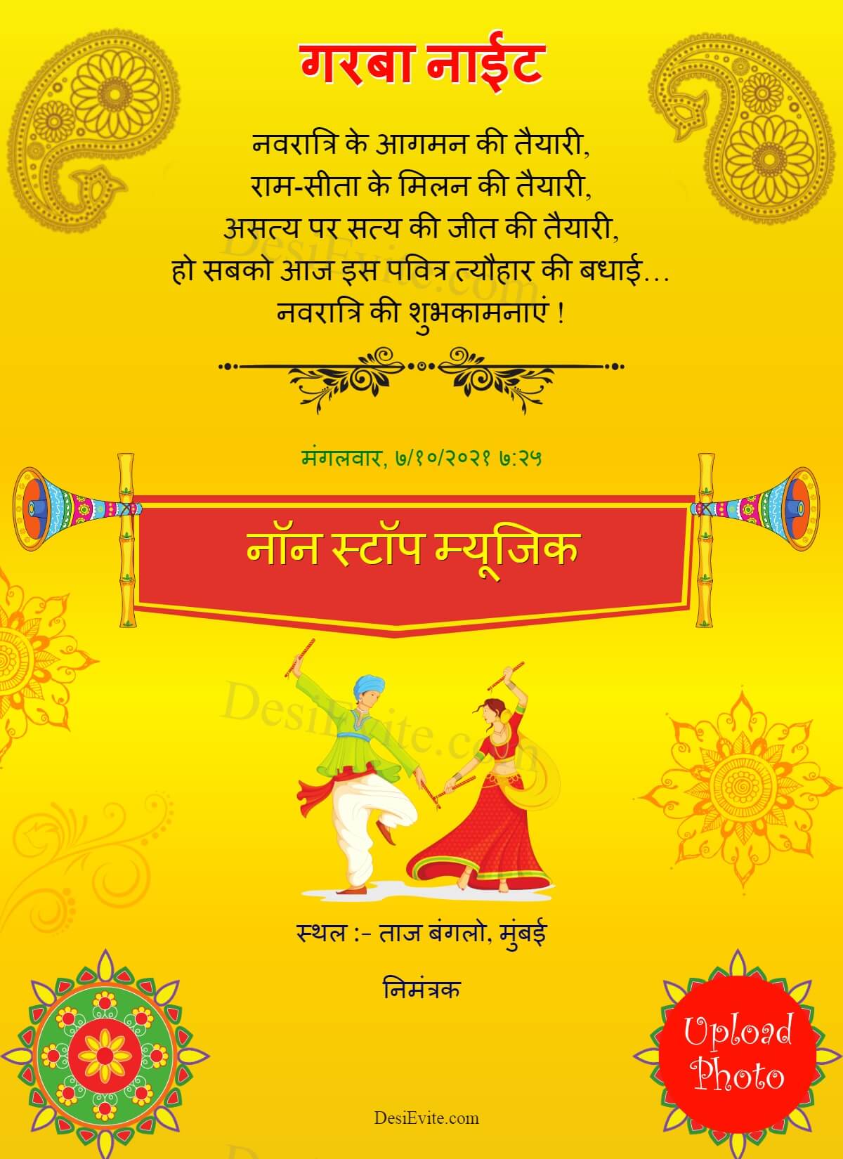 hindi garba night traditional invitation card with photo template 103