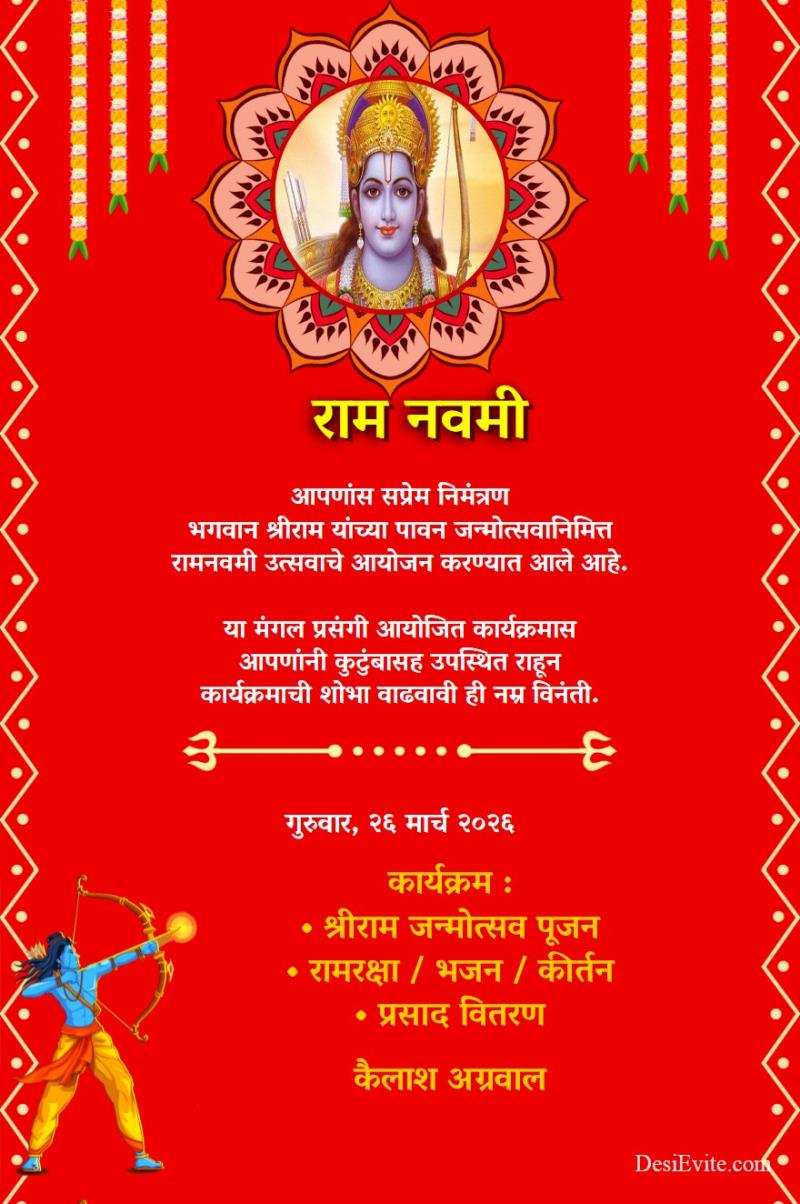 Ram Navami Celebration Invitation Card (ID-19952 Static Card )