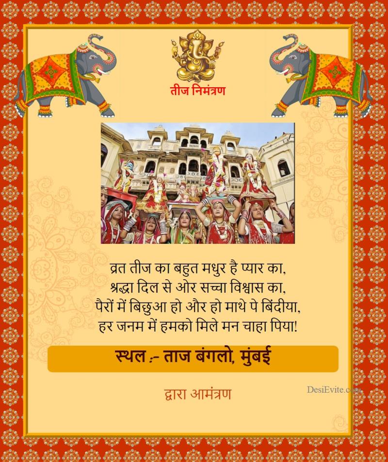 hindi traditional rajasthan teej festival invitation ecard 118});