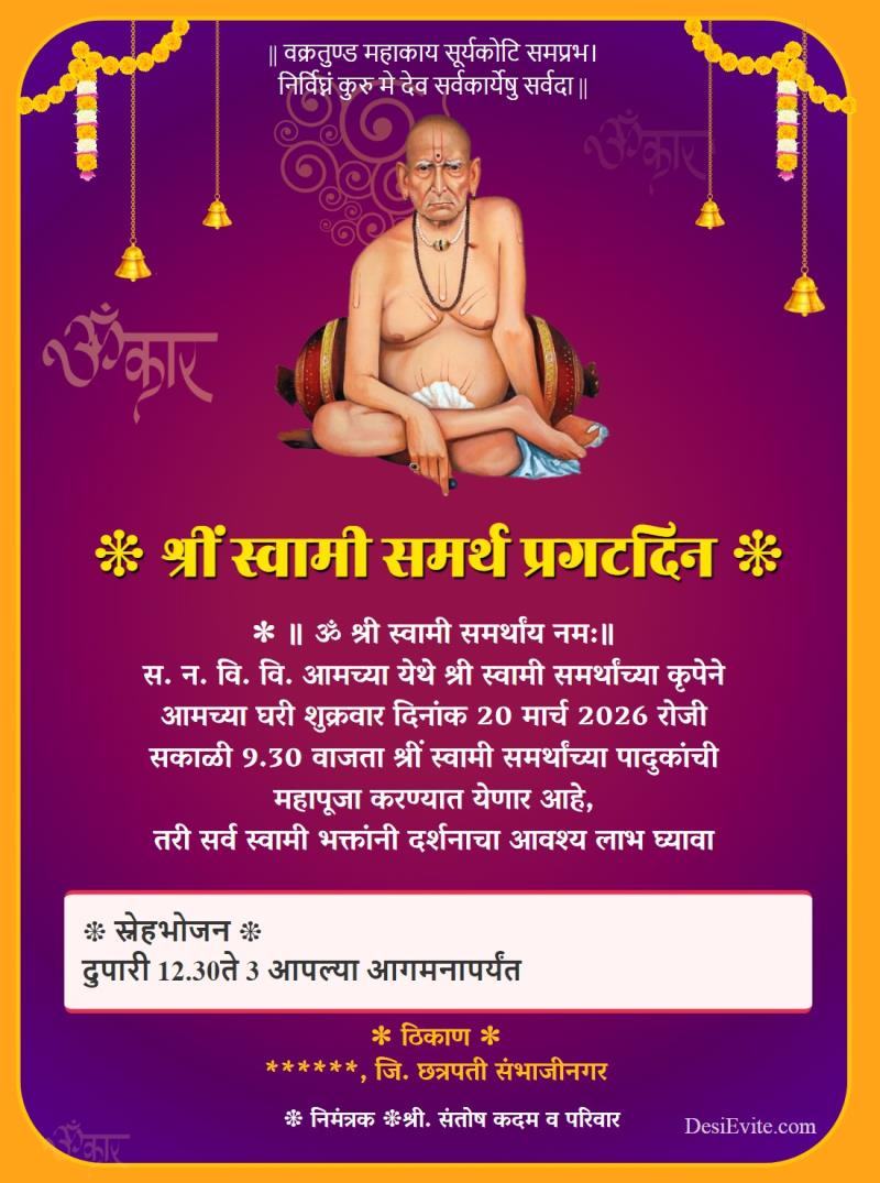 Swami Samarth Paduka Pujan Invitation ecard (ID-13800 Static Card )