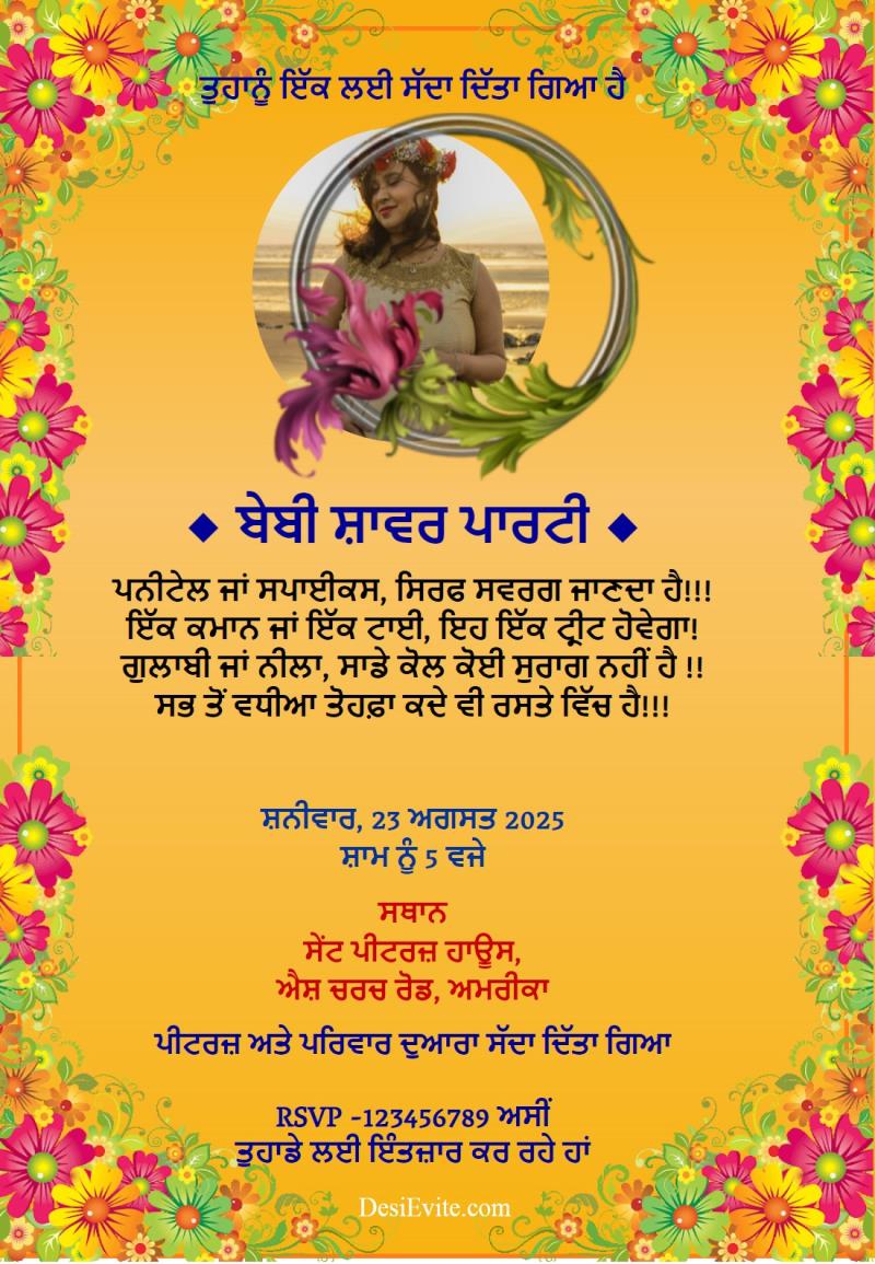 Indian baby shower invitation ecard flower theme