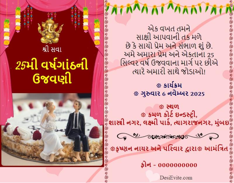 Gujarati Wedding Anniversary Invitation Card Traditional Theme