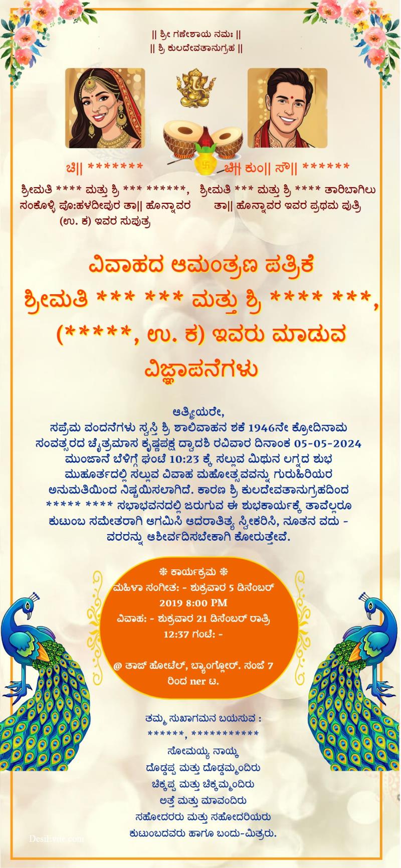 Kannada online editable indian wedding invitation ecard peacock theme 89
