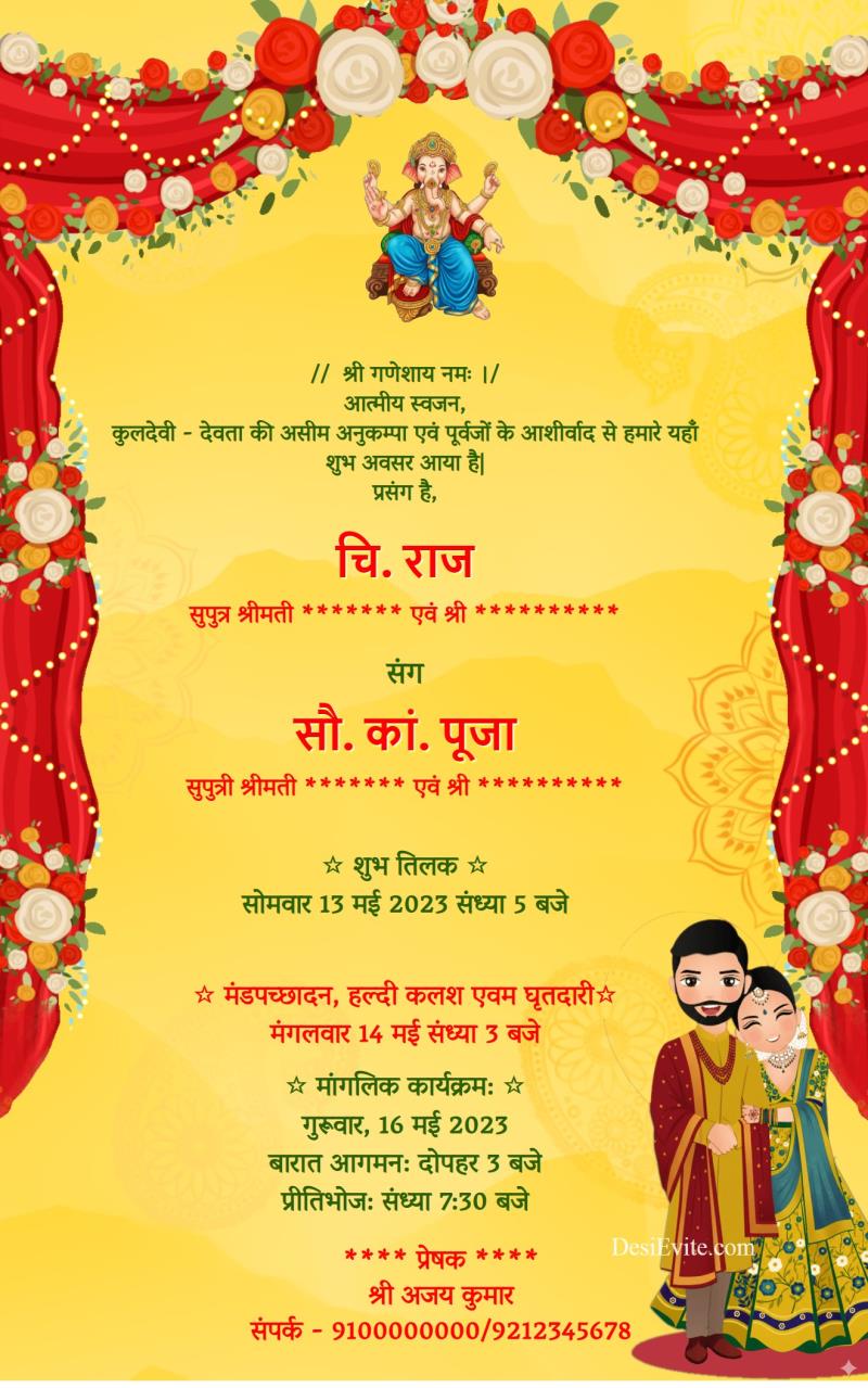 Please make sure you have updated all your information before click preview button, you will have limited number of preview.. This item is e-card (Digital Invitation), which you can download and then send via whatsapp attachment or share on social media site like Instagram, Facebook, Whatsapp, Google. Please mention valid email on top to get e-card copy on email.