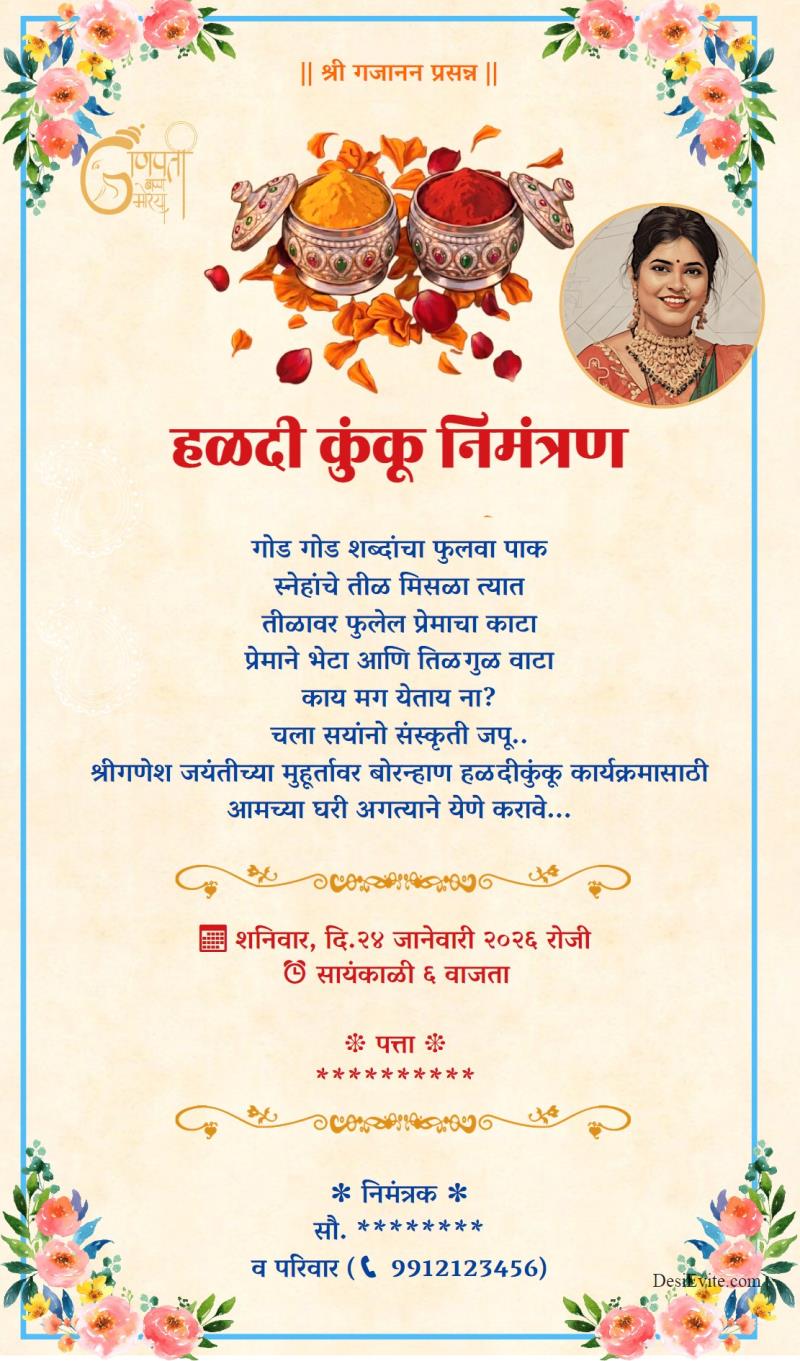 Kannada Haldi kumkum invitation ecard in marathi font or Haldi kumkum invitation ecard template in marathi