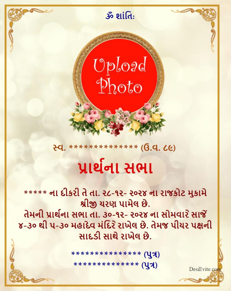 Gujarati card for दसवां / तेरहवीं संस्कार / shok sandesh